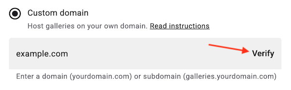 - In Honcho, click Verify in the custom domain field.